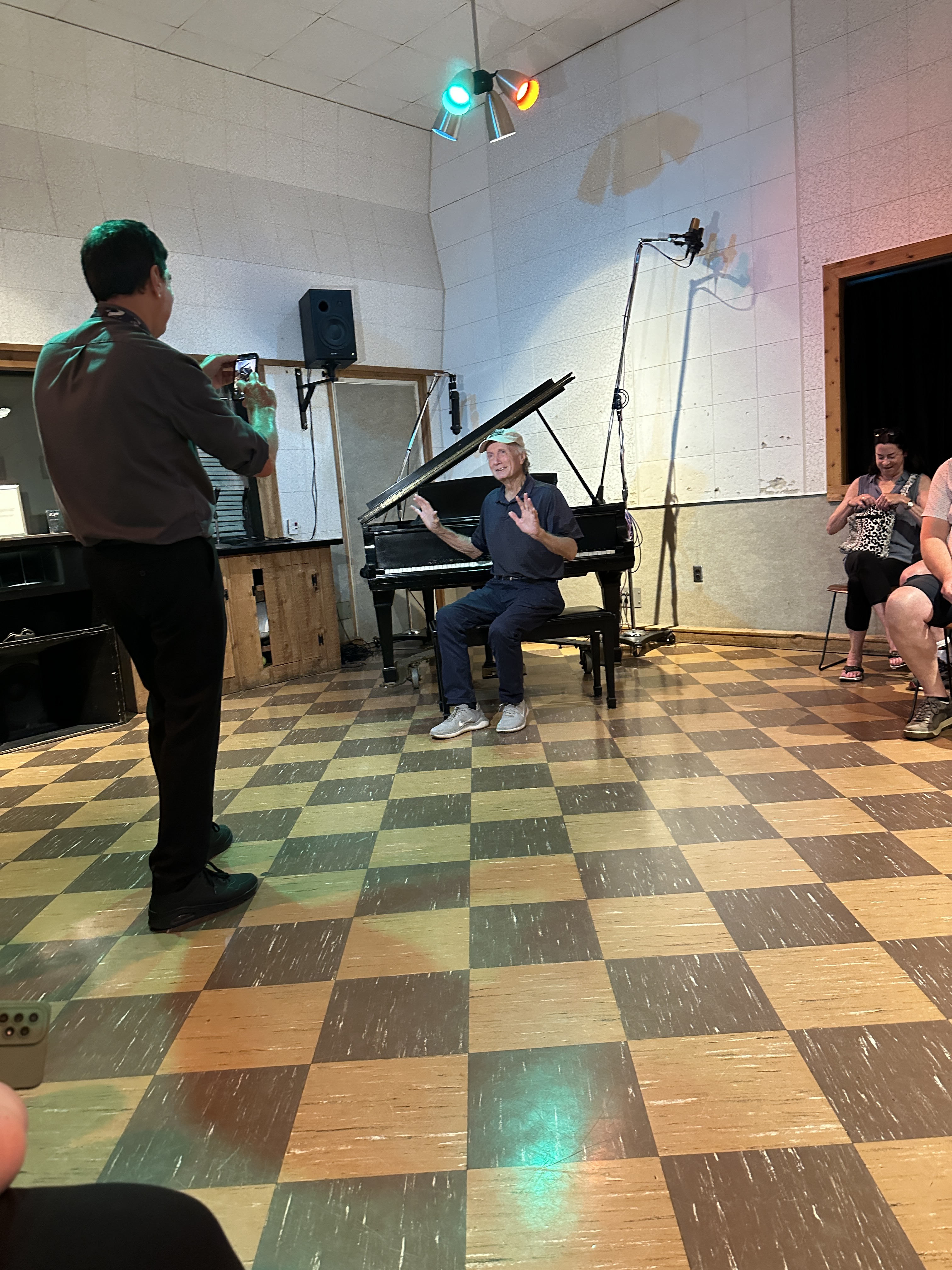 Tonight we’ll go to the Opry to see Mandy Barnett, who we interviewed a few months ago. Another high point of this trip was a tour of RCA Studio B where Elvis recorded dozens of hits. The tour guide from the Country Music Hall of Fame immediately recognized Wood Newton and introduced him to the other tourists on the tour, then asked him to sit at the Steinway that Elvis played.